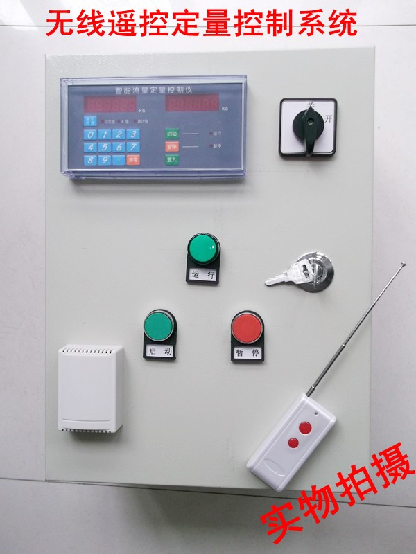 2、定量值設定完后,按下啟動按鈕電磁閥、水泵打開,流量計開始工作。儀表右邊窗口開始根據左邊定量值累加,等達到定量值后電磁閥、水泵自動關閉,定量結束。